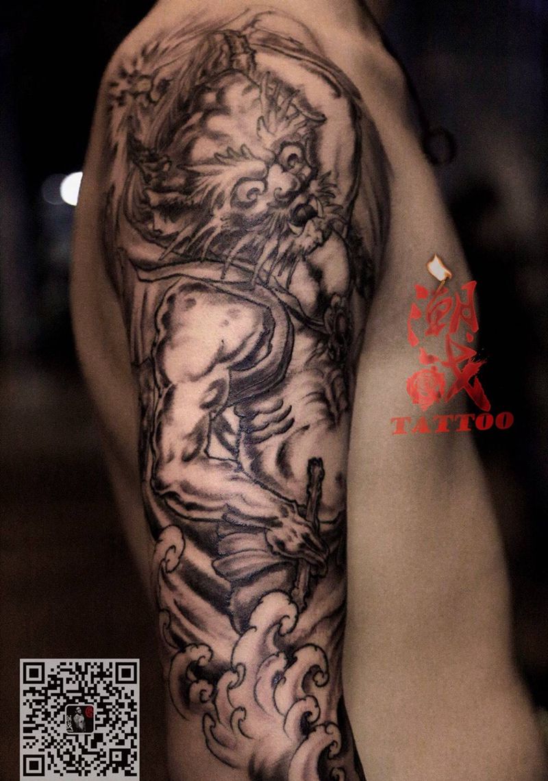 当前位置: 首页 >上海市纹身店-上海纹身潮战TATTOO纹身图案>雷神纹身图片_成品手臂传统人物雷神纹身图案
