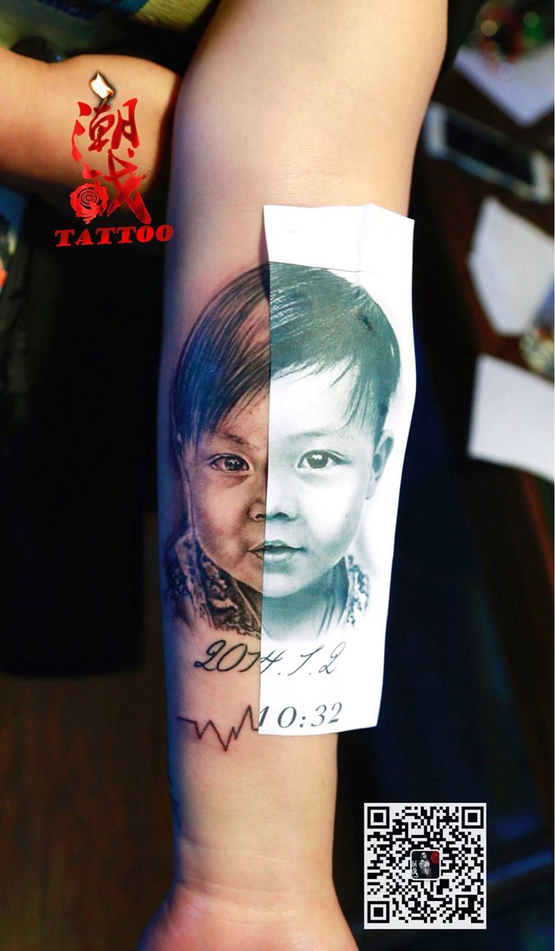 当前位置: 首页 >上海市纹身店-上海纹身潮战TATTOO纹身图案>我的宝贝纹身图片_成品手臂写实肖像原创纹身图案