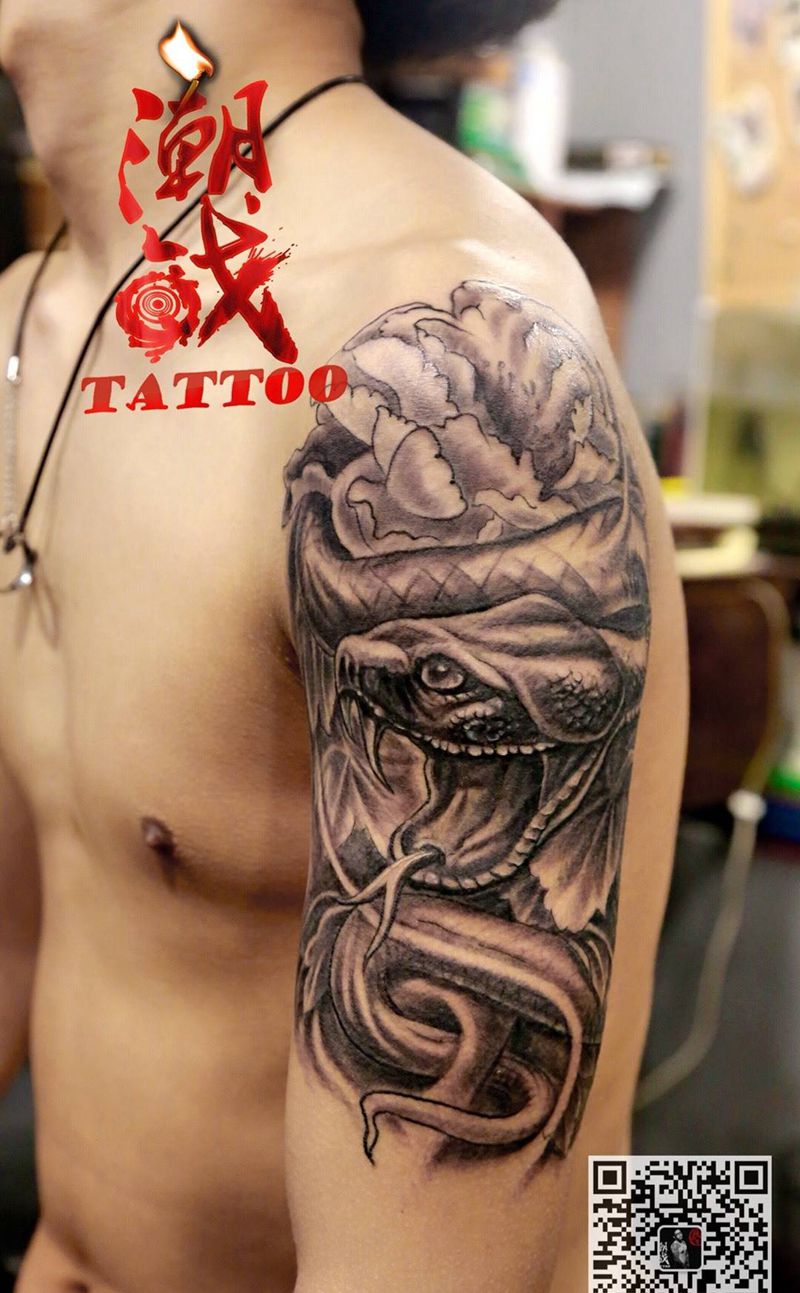 当前位置: 首页 >上海市纹身店-上海纹身潮战TATTOO纹身图案>劲舞银蛇纹身图片_成品手臂写实动物纹身图案