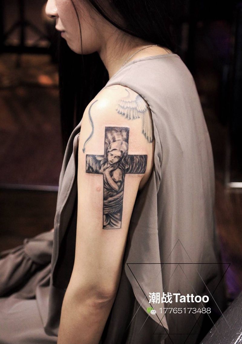 当前位置: 首页 >上海市纹身店-上海纹身潮战TATTOO纹身图案>天使的微笑纹身图片_成品手臂欧美写实人物纹身图案