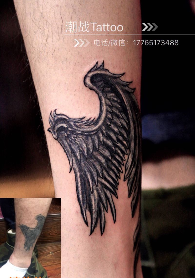纹身美化纹身图片_成品腿部翅膀美化纹身图案