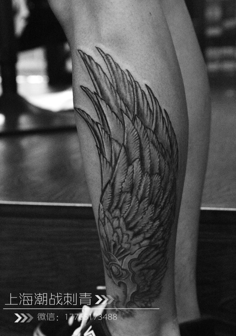 当前位置: 首页 >上海市纹身店-上海纹身潮战TATTOO纹身图案>翼纹身图片_成品腿部写实欧美清新纹身图案