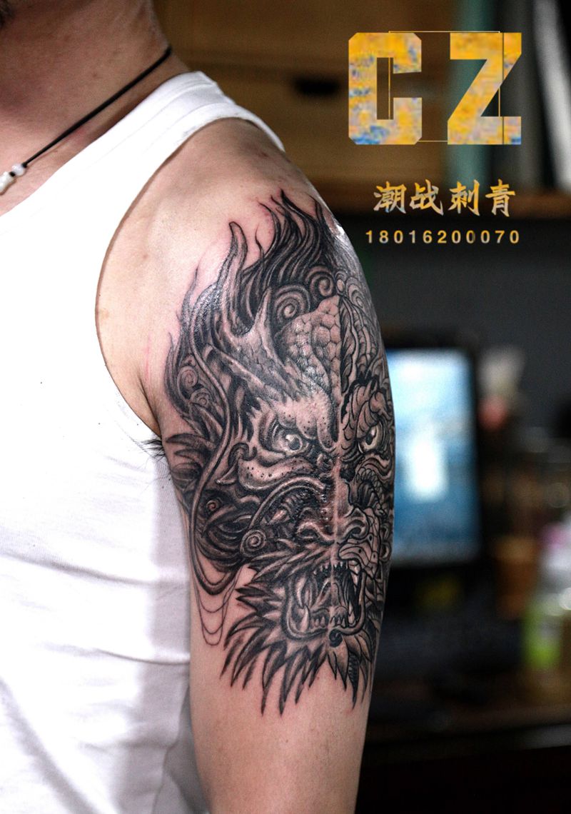 当前位置: 首页 >上海市纹身店-上海纹身潮战TATTOO纹身图案>大龙头纹身图片_手臂新传统龙纹身图案