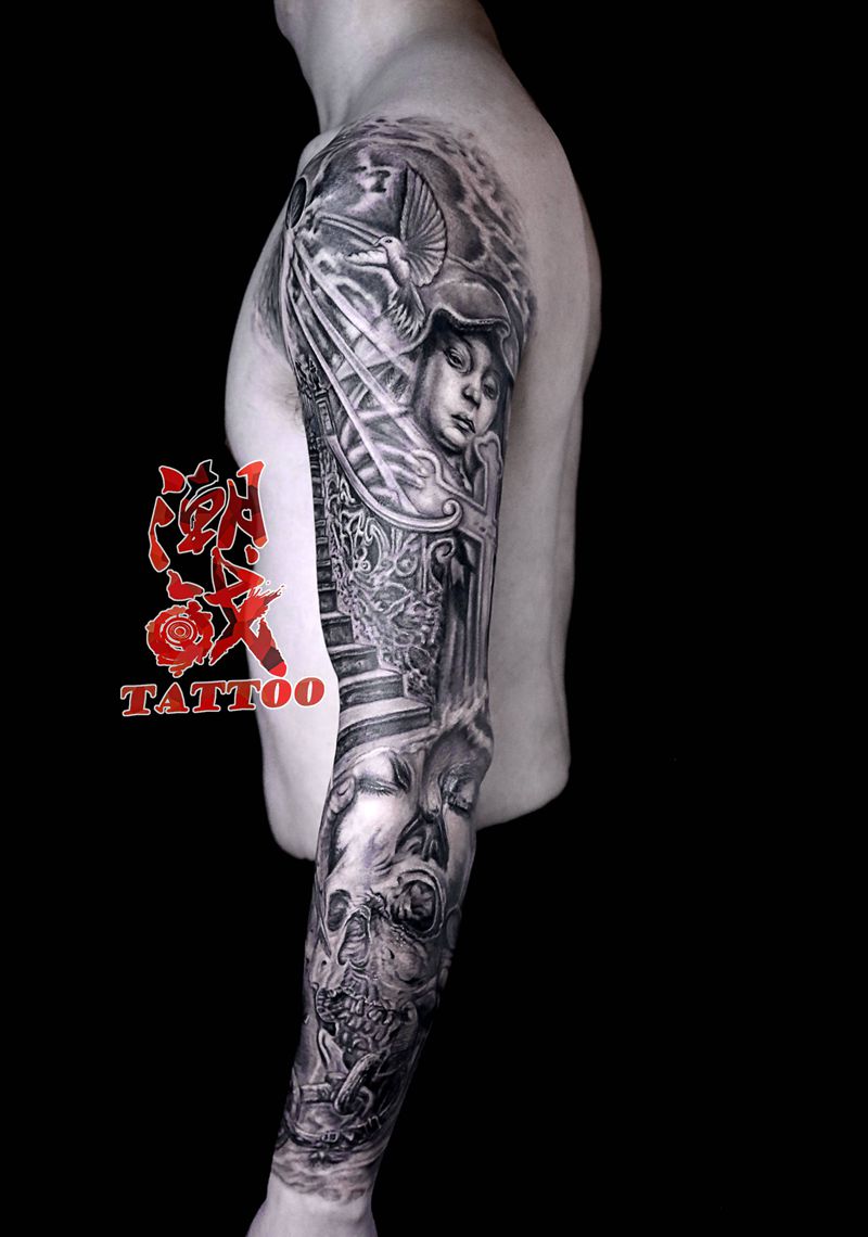 挣脱后的释然纹身图片_手臂欧美写实花臂纹身图案