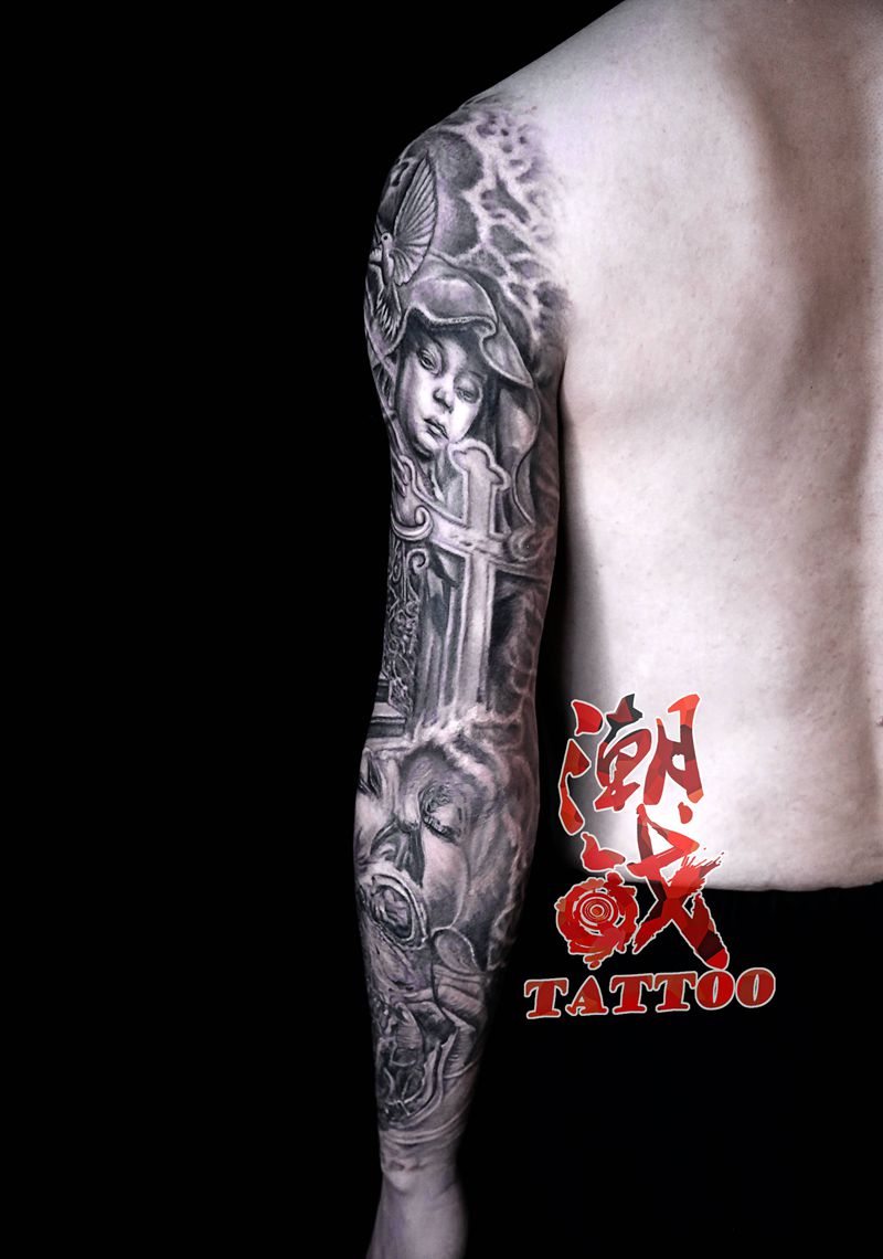 挣脱后的释然纹身图片_手臂欧美写实花臂纹身图案