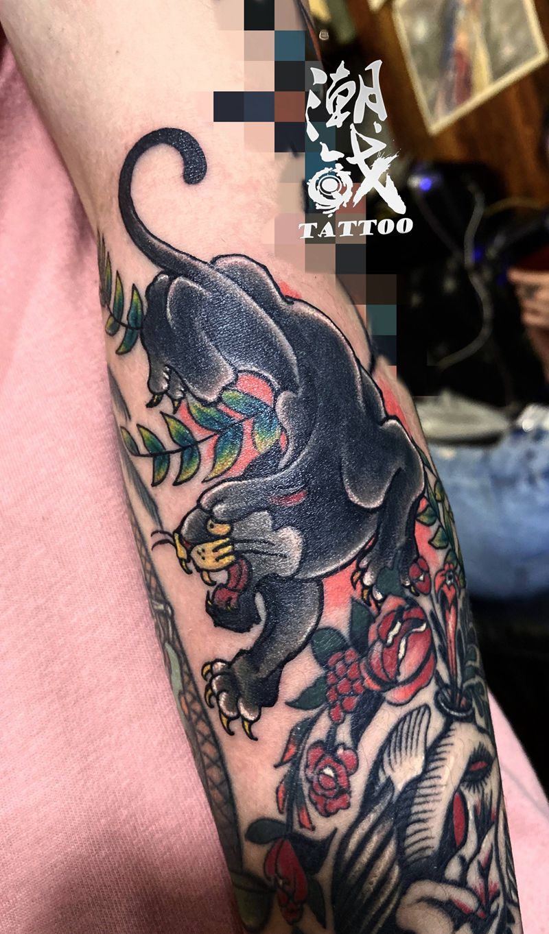 当前位置: 首页 >上海市纹身店-上海纹身潮战TATTOO纹身图案>old school豹子纹身图片_手臂Old School豹纹身图案