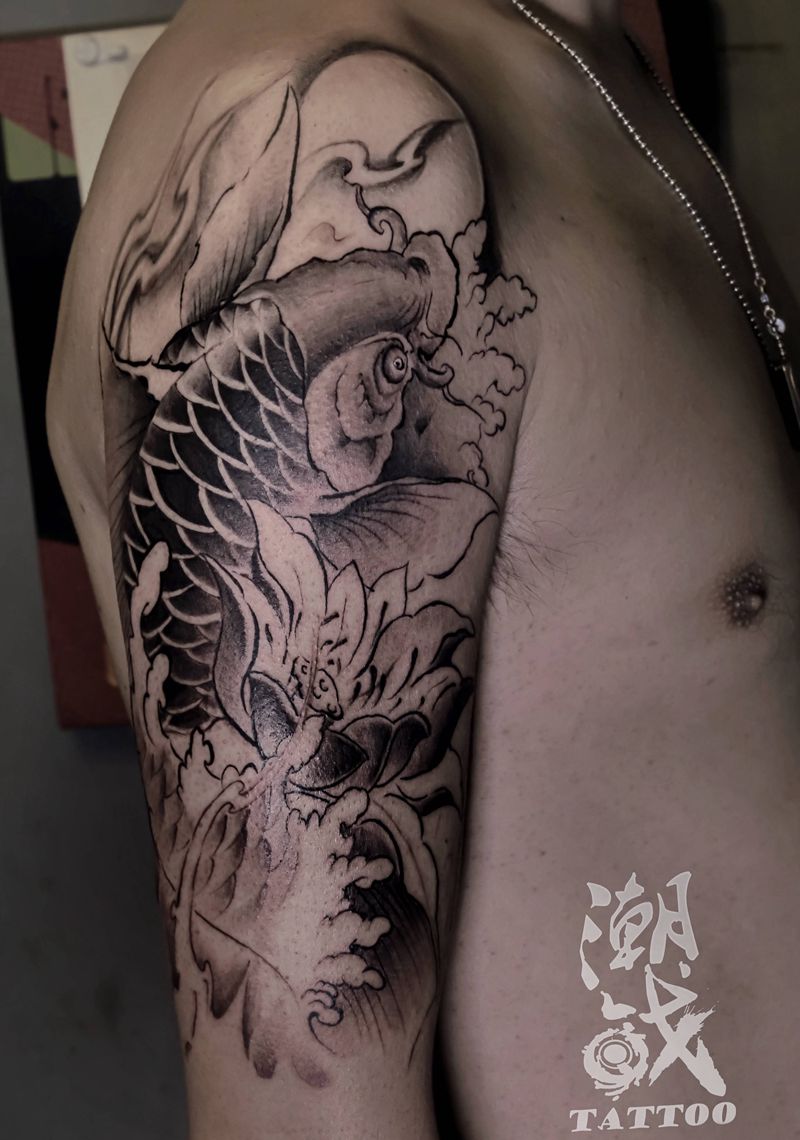 当前位置: 首页 >上海市纹身店-上海纹身潮战TATTOO纹身图案>鲤鱼纹身图片_手臂新传统纹身图案