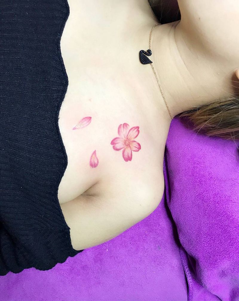 美女胸前小花纹身图片