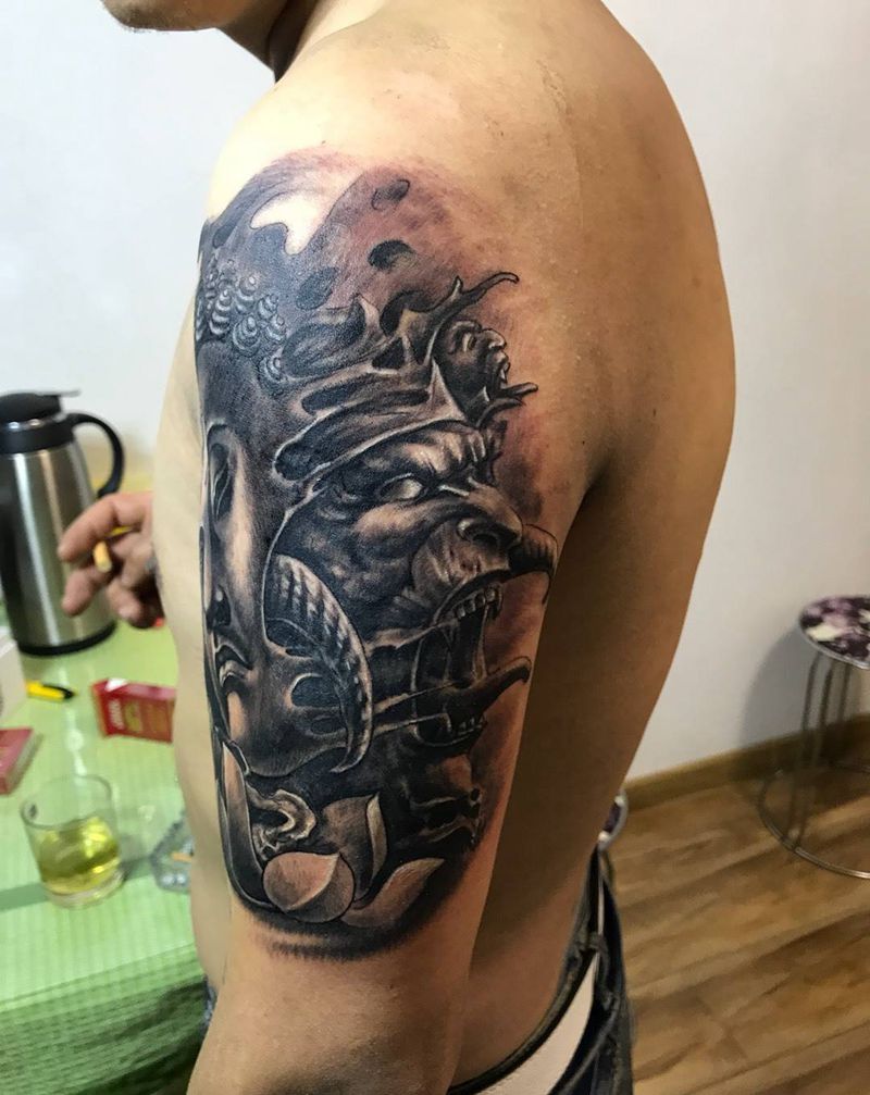 • 纹身吧推荐的披肩图腾半胛纹身图案作品展示