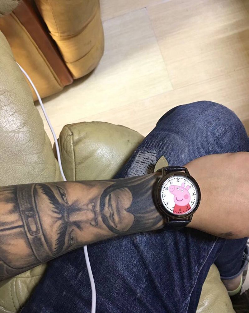 • T包小腿吹火男+阿多福纹身图片_腿部老传统新传统吹火男阿