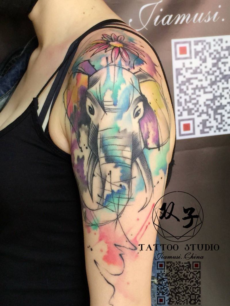 当前位置: 首页 >黑龙江省佳木斯市纹身店-双子纹身纹身图案>泼墨象神纹身图片