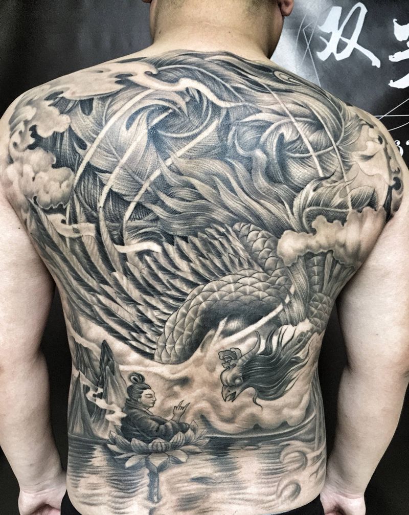 当前位置: 首页 >黑龙江省佳木斯市纹身店-双子纹身纹身图案>恢复后的满背,观音降凤纹身图片