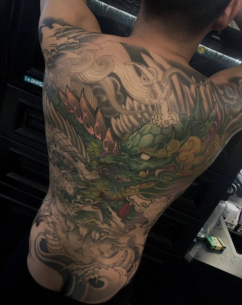 • T云龙九郎纹身图片_背部老传统云龙九郎纹身图案