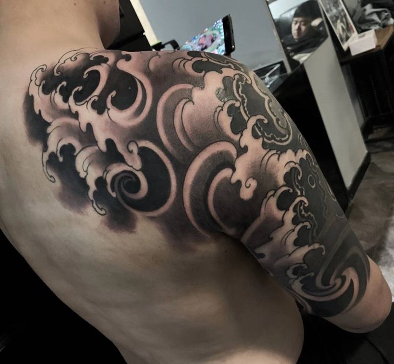 • 黑灰满背纹身图案