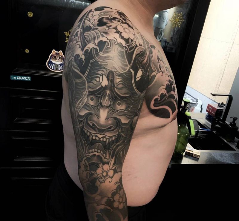 般若半甲纹身图片_胸部手臂老传统新传统纹身图案