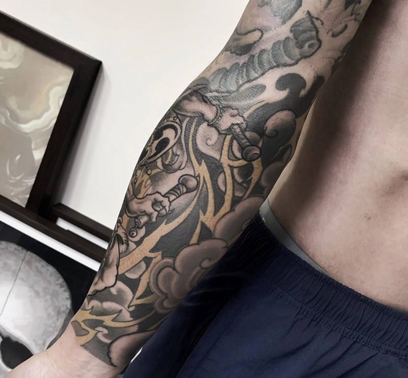 当前位置: 首页 >上海市纹身店-上海弘刺青纹身图案>风神雷神纹身图片_手臂老传统新传统纹身图案