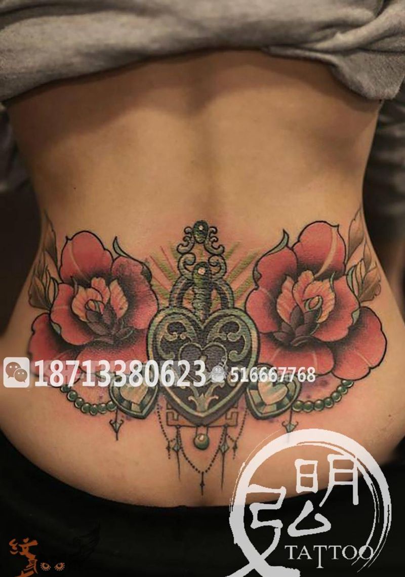• 东方性感美女腰部温馨花藤图纹身图片