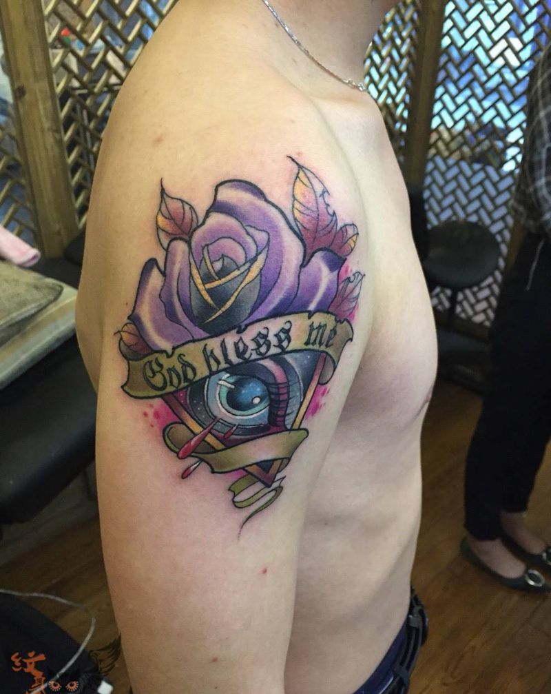 • 纹身吧推荐的披肩图腾半胛纹身图案作品展示