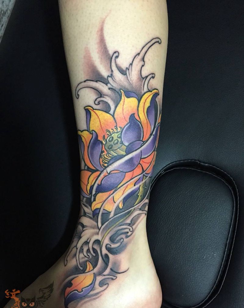 • T网红王老大花腿龙纹身图片_腿部新传统纹身图案