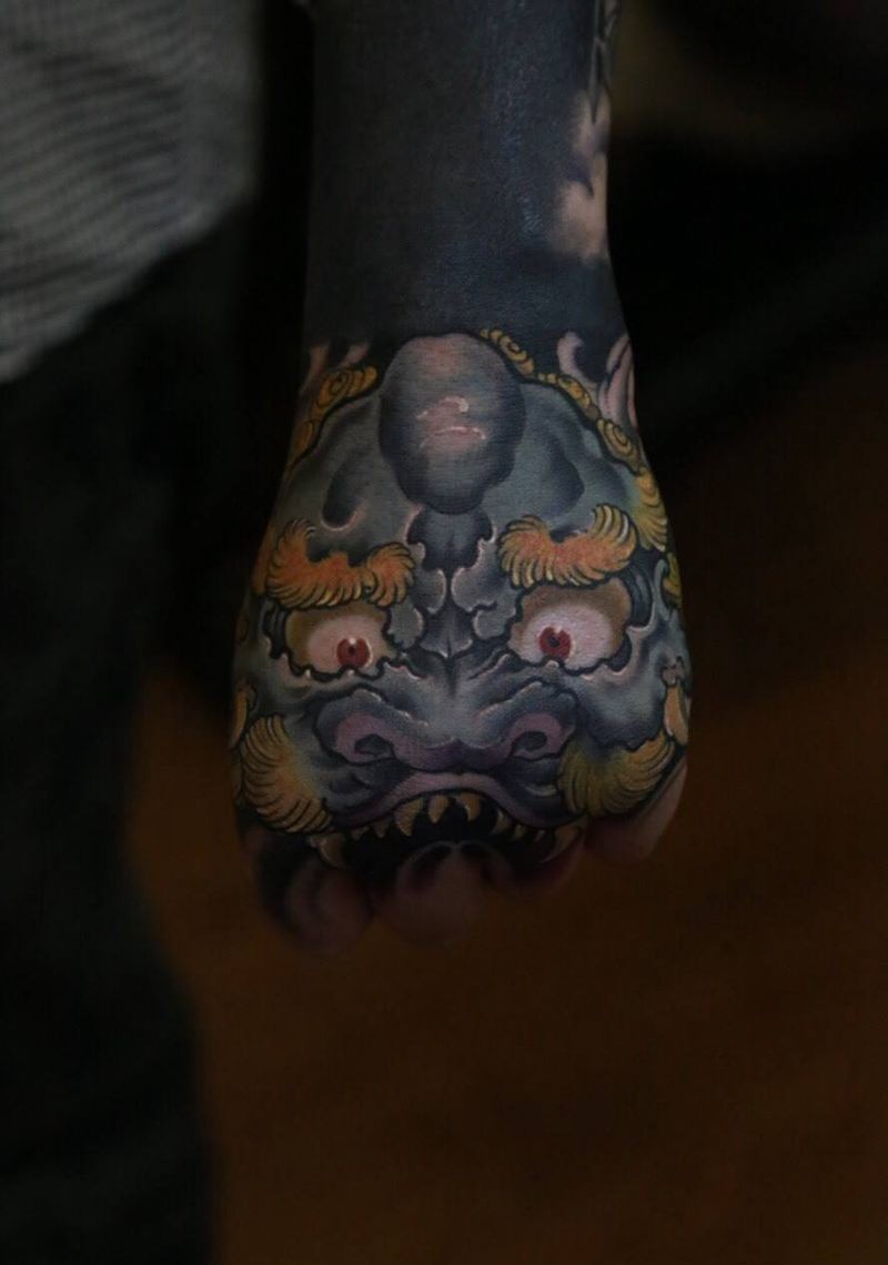当前位置: 首页 >上海市纹身店-上海弘刺青纹身图案>唐狮手面纹身图片