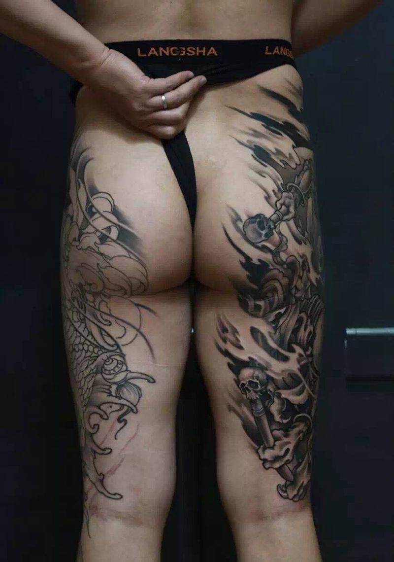 • T网红王老大花腿龙纹身图片_腿部新传统纹身图案