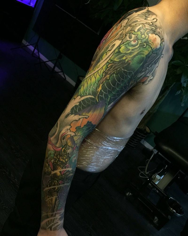 当前位置: 首页 >上海市纹身店-上海弘刺青纹身图案>双鳌鱼花臂纹身图片