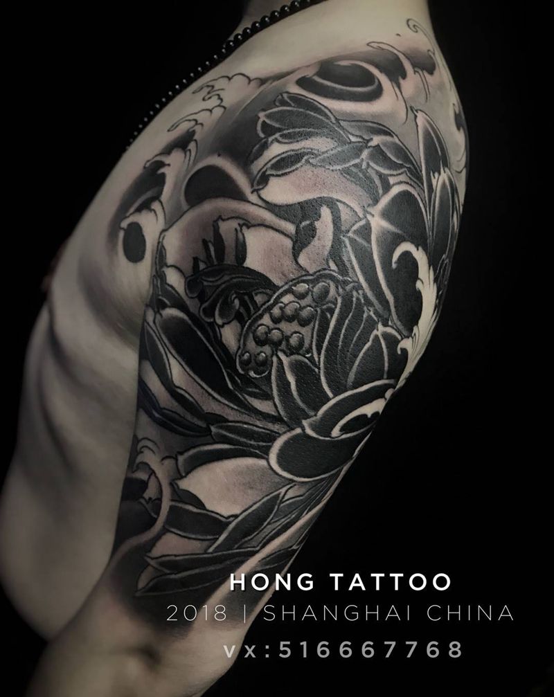 当前位置: 首页 >上海市纹身店-上海弘刺青纹身图案>传统荷花配浪纹身图片