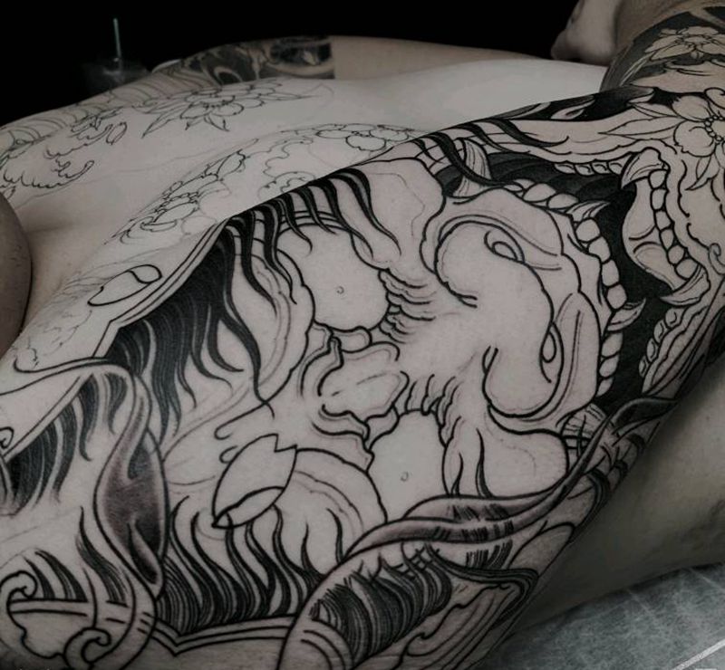 • 黑灰满背纹身图案