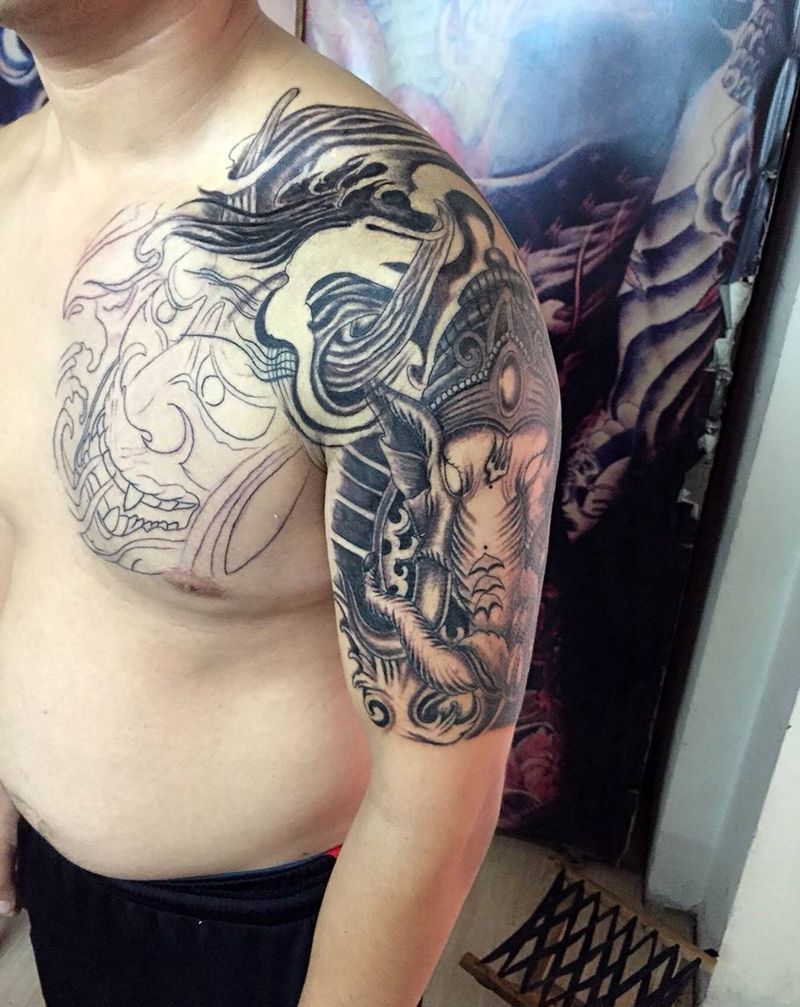 当前位置: 首页 >黑龙江省牡丹江市纹身店-牡丹江东一纹身馆纹身图案>黑灰半甲纹身纹身图片