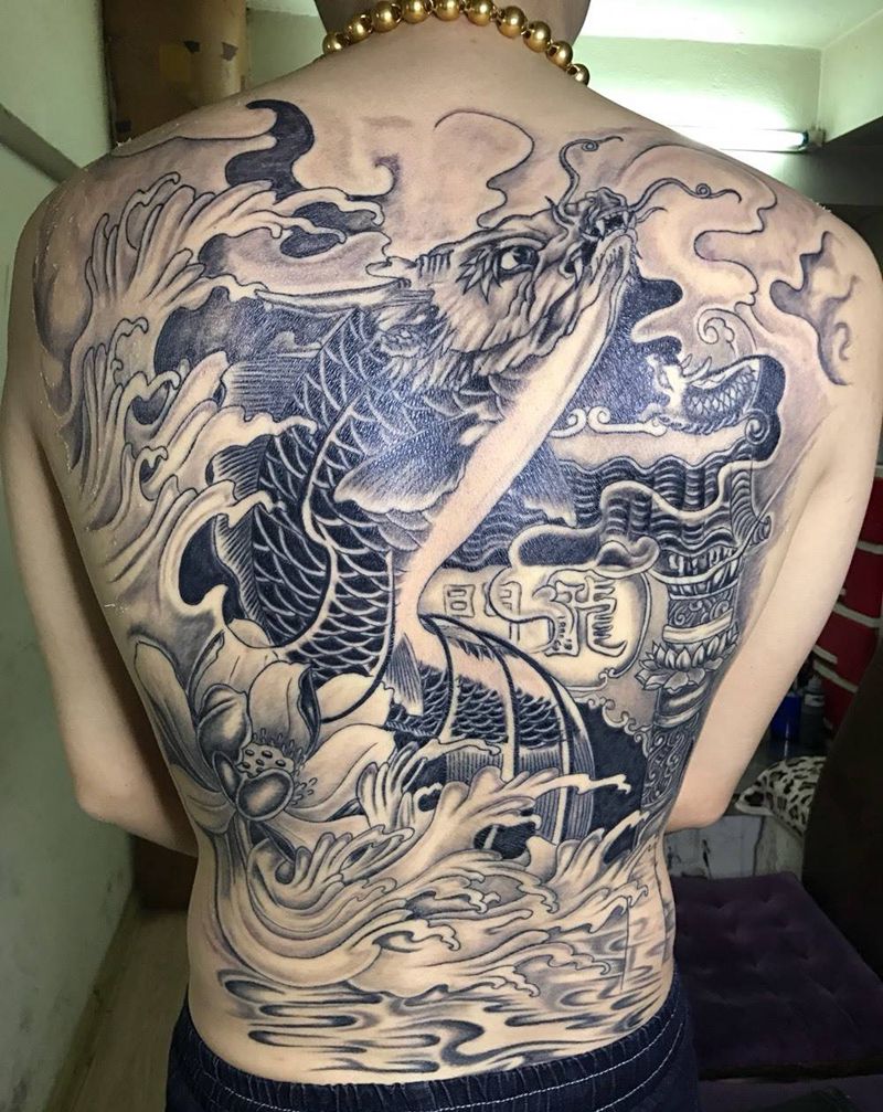 当前位置: 首页 >黑龙江省牡丹江市纹身店-牡丹江东一纹身馆纹身图案>满背鲤鱼跃龙门纹身图片