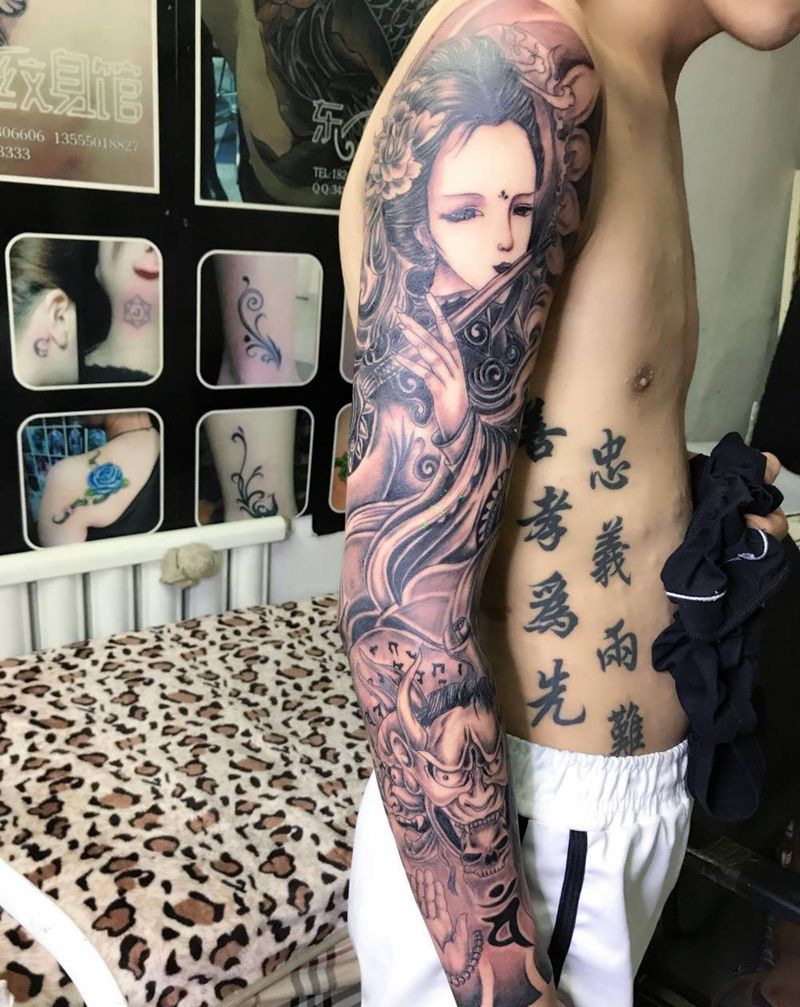 当前位置: 首页 >黑龙江省牡丹江市纹身店-牡丹江东一纹身馆纹身图案>艺妓三面般若纹身纹身图片