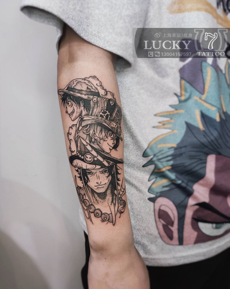海贼王|路飞三兄弟|幸运7纹身纹身图片_手臂动漫纹身图案