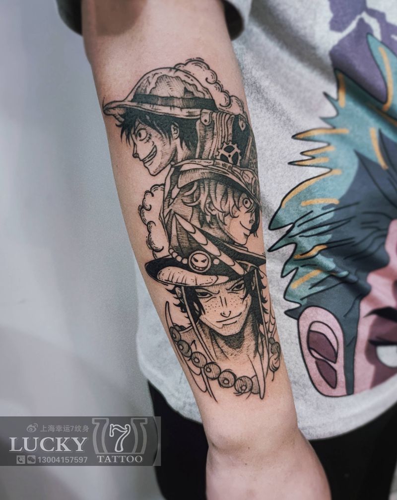 海贼王|路飞三兄弟|幸运7纹身纹身图片_手臂动漫纹身图案