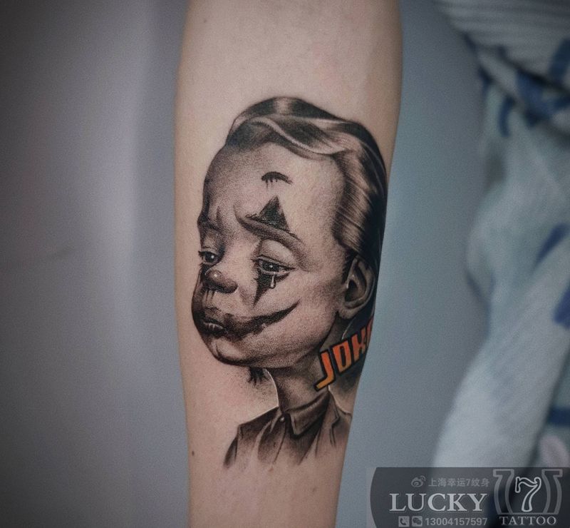 当前位置: 首页 >上海市纹身店-幸运7纹身Lucky7tattoo纹身图案>小丑Joker|幸运7纹身纹身图片_手臂欧美写实纹身图案