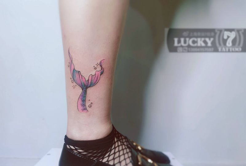 小鱼尾|幸运7纹身纹身图片_脚踝小清新纹身图案