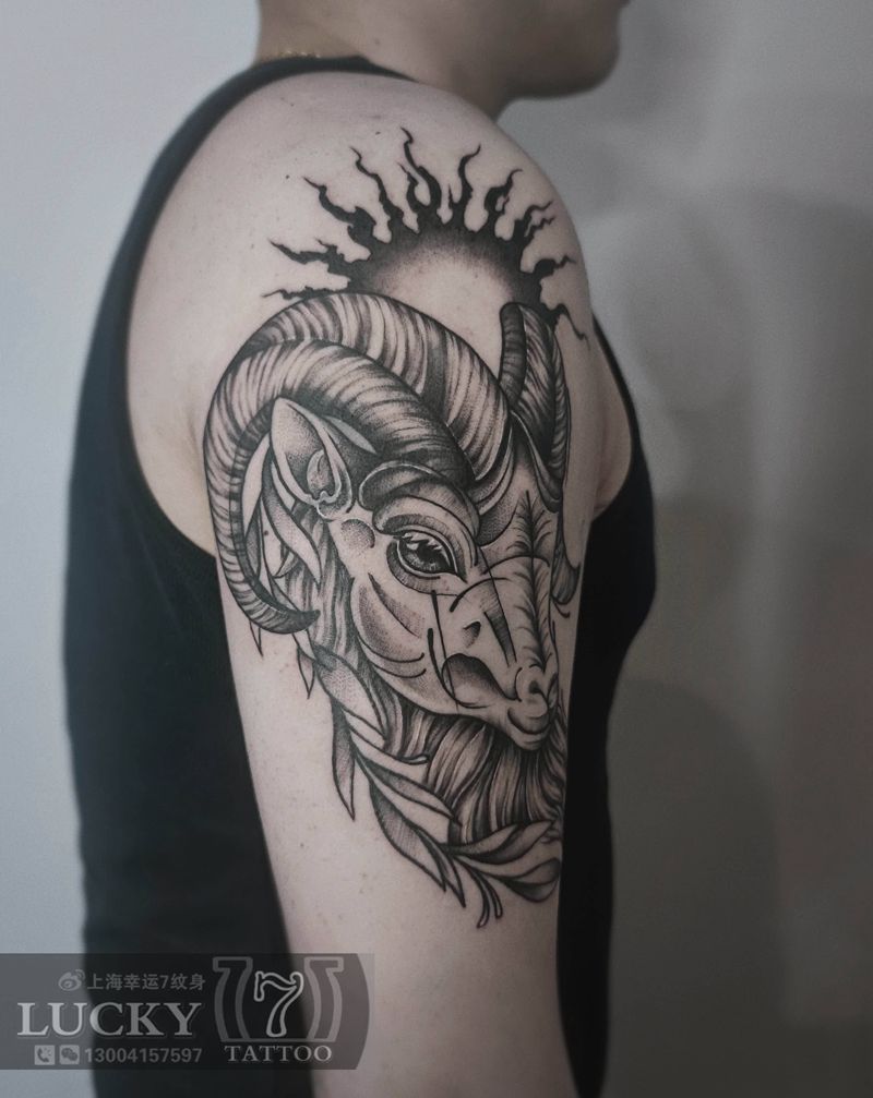 遮盖|羊头|幸运7纹身纹身图片_手臂盖图纹身图案