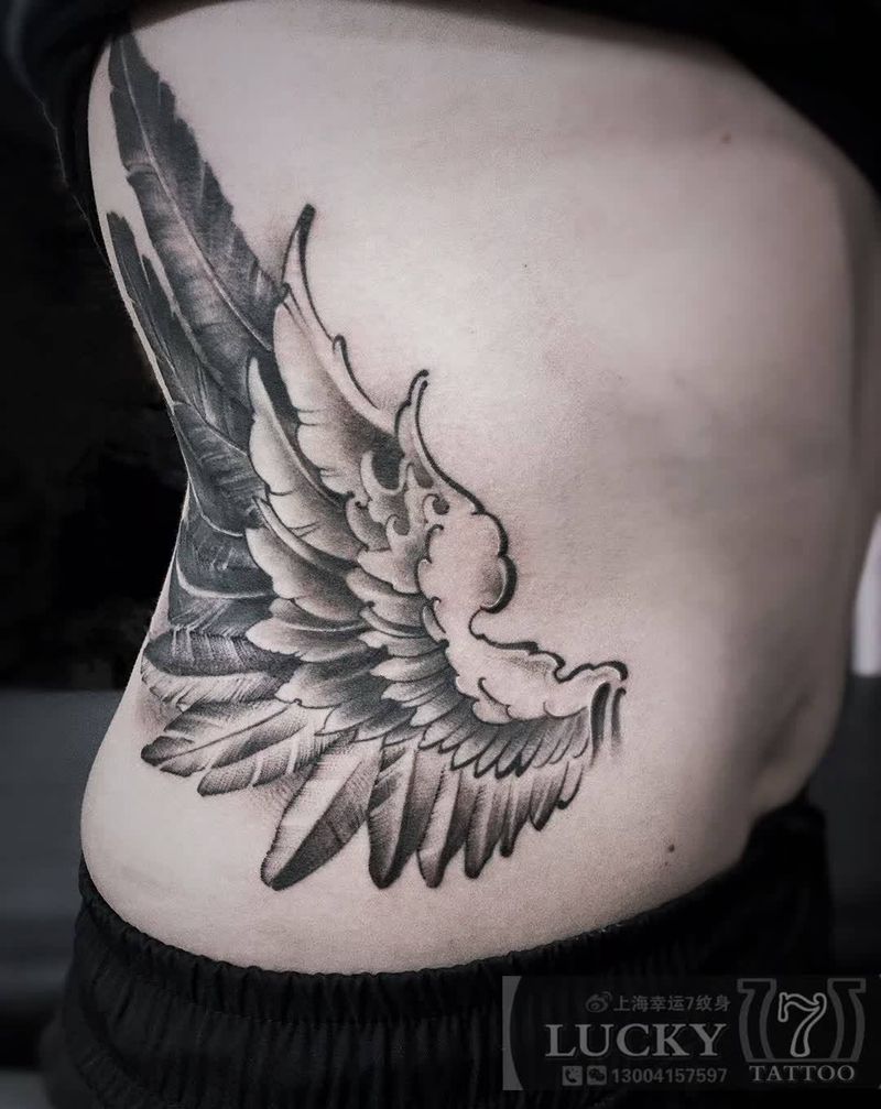 翅膀|遮盖|幸运7纹身纹身图片_腰部侧肋遮盖纹身图案
