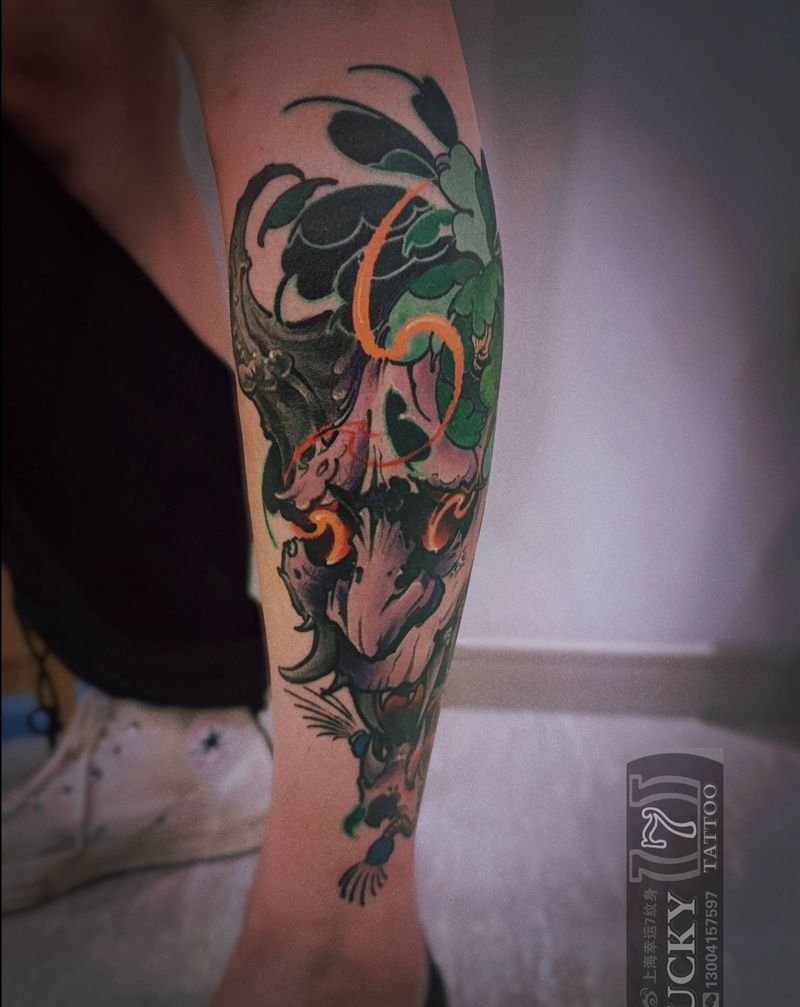 般若(恢复后)|幸运7纹身纹身图片_New School新传统小腿纹身图案