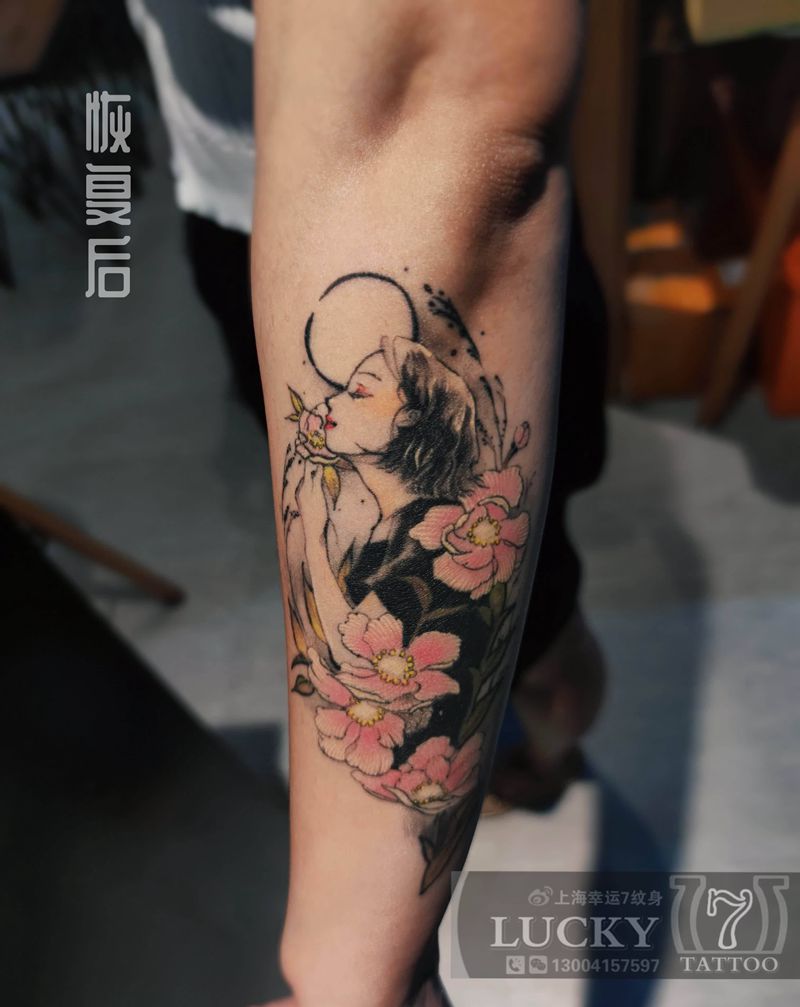 清新美少女(恢复)|幸运7纹身纹身图片_手臂水彩纹身图案