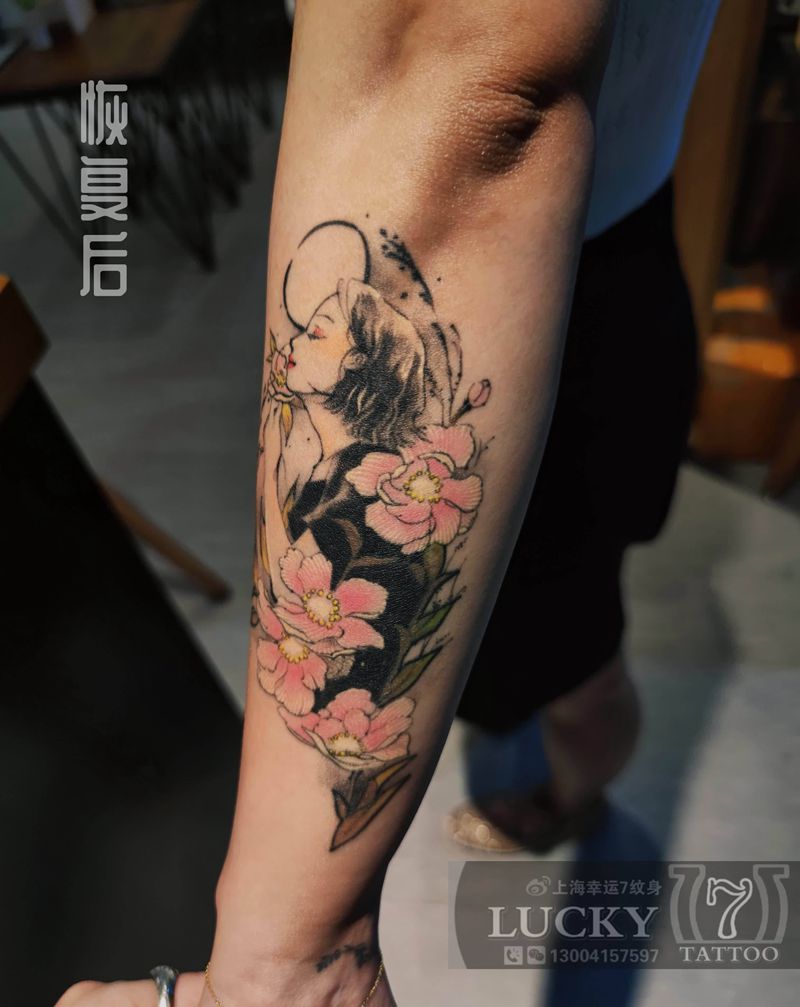 清新美少女(恢复)|幸运7纹身纹身图片_手臂水彩纹身图案
