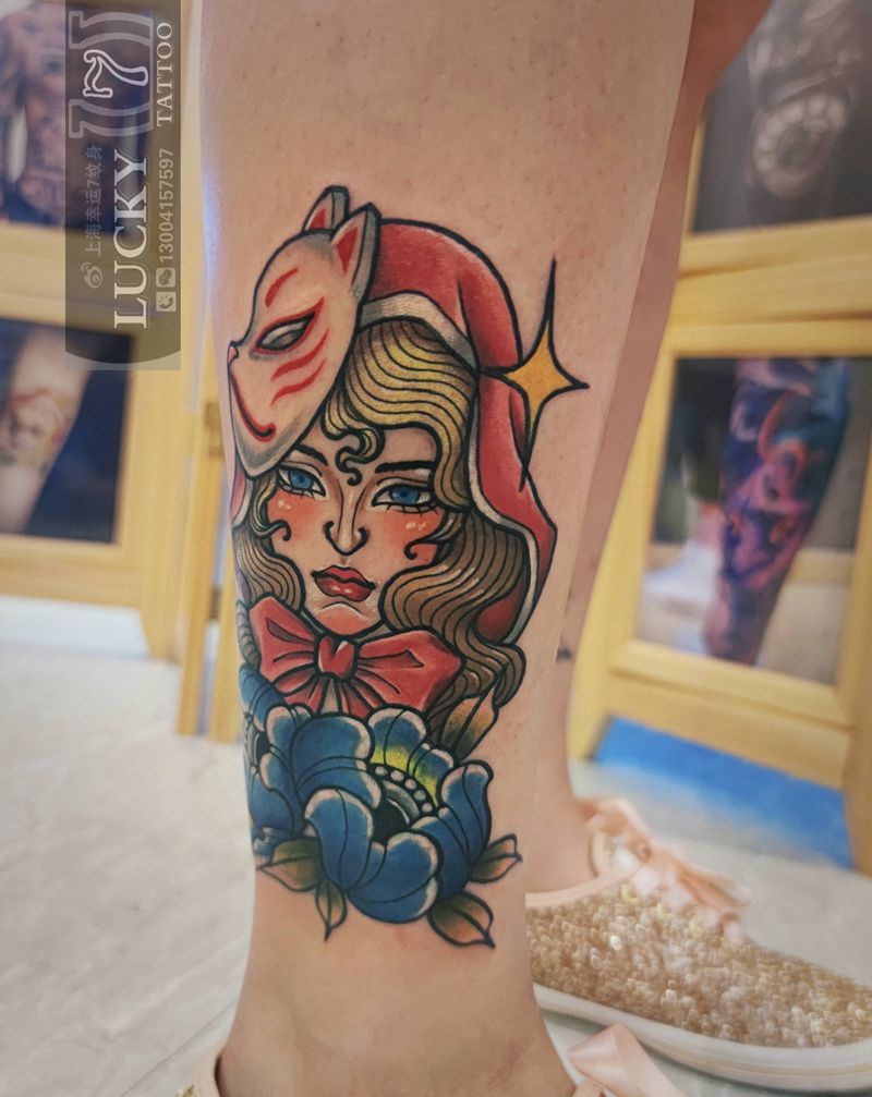 当前位置: 首页 >上海市纹身店-幸运7纹身Lucky7tattoo纹身图案>小红帽(遮盖)|幸运7纹身纹身图片_New School小腿遮盖纹身图案