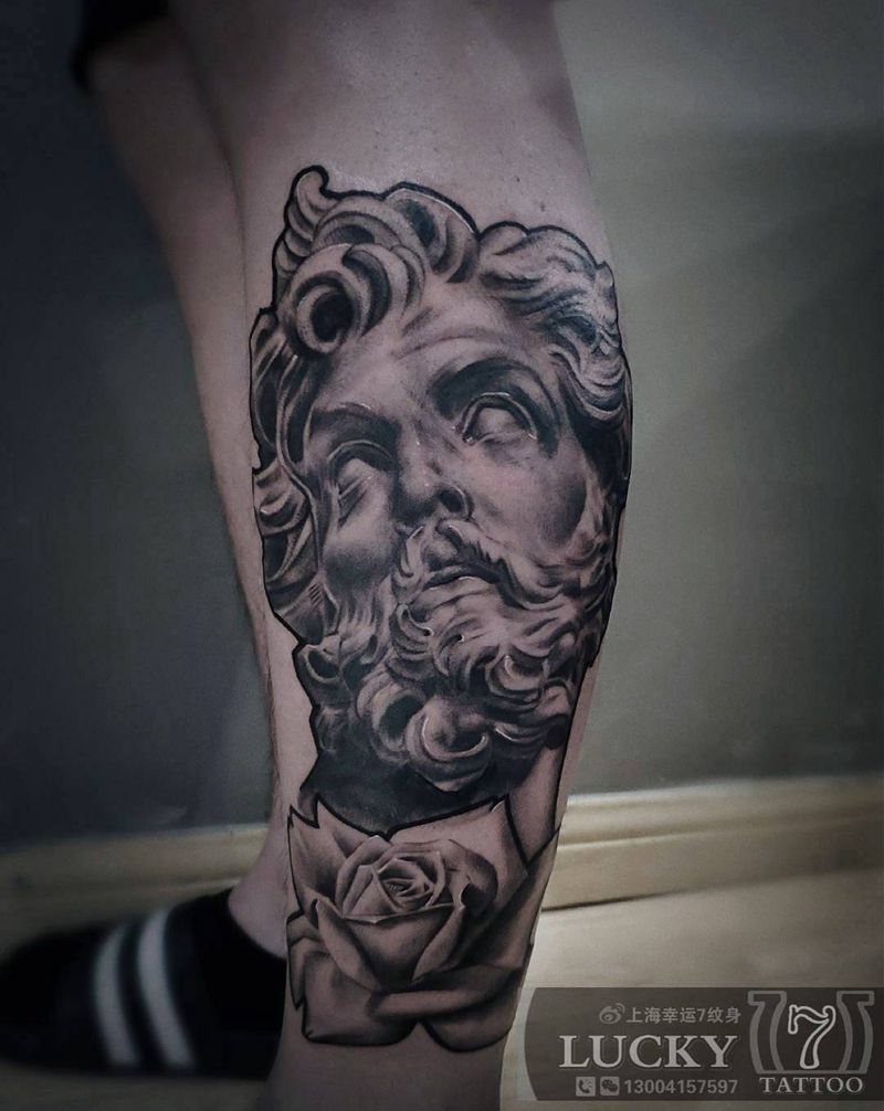 大卫石膏像|幸运7纹身纹身图片_欧美写实小腿纹身图案