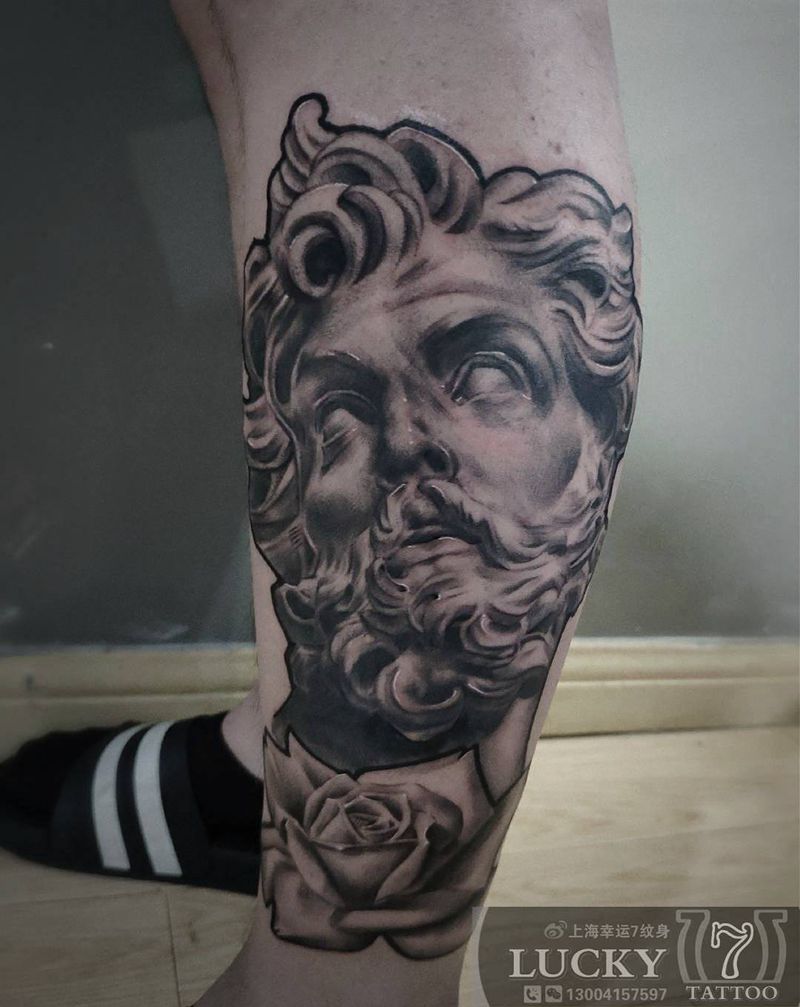 大卫石膏像|幸运7纹身纹身图片_欧美写实小腿纹身图案