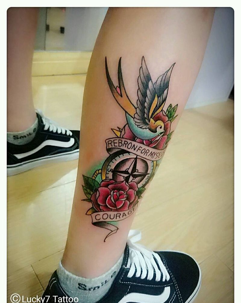 当前位置: 首页 >上海市纹身店-幸运7纹身Lucky7tattoo纹身图案>燕子|指南针|玫瑰|幸运7纹身纹身图片_腿部欧美原创彩色成品纹身图案