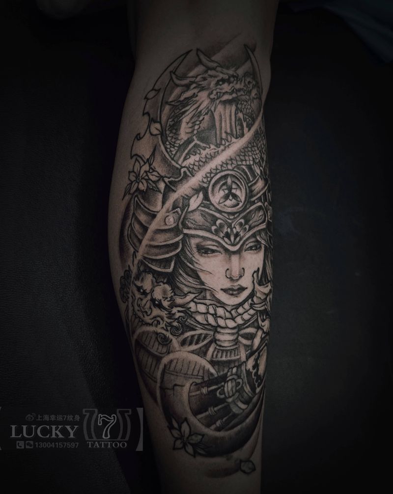 盖图|花木兰|幸运7纹身纹身图片_新传统小腿纹身图案