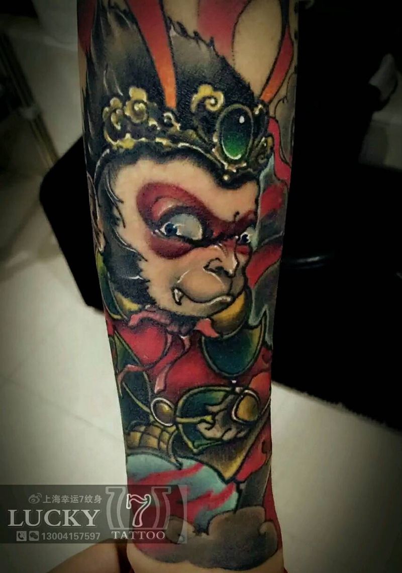 传统|孙悟空|幸运7纹身纹身图片_手臂传统人物鬼神彩色成品纹身图案