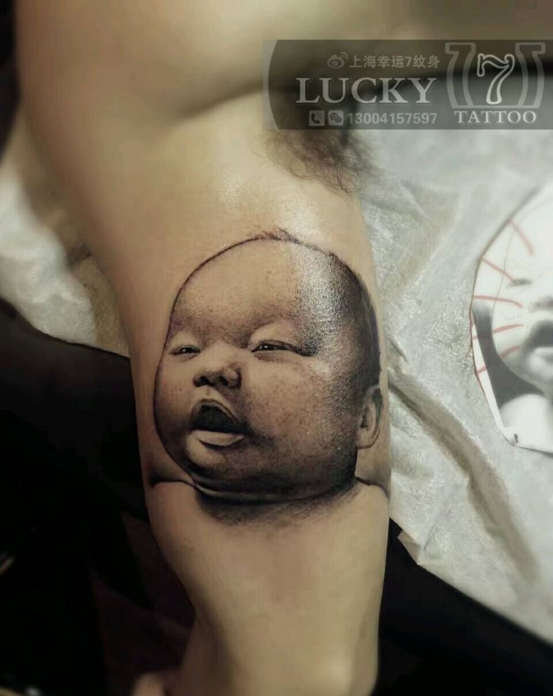 人物肖像|幸运7纹身纹身图片_手臂肖像人物黑灰成品纹身图案