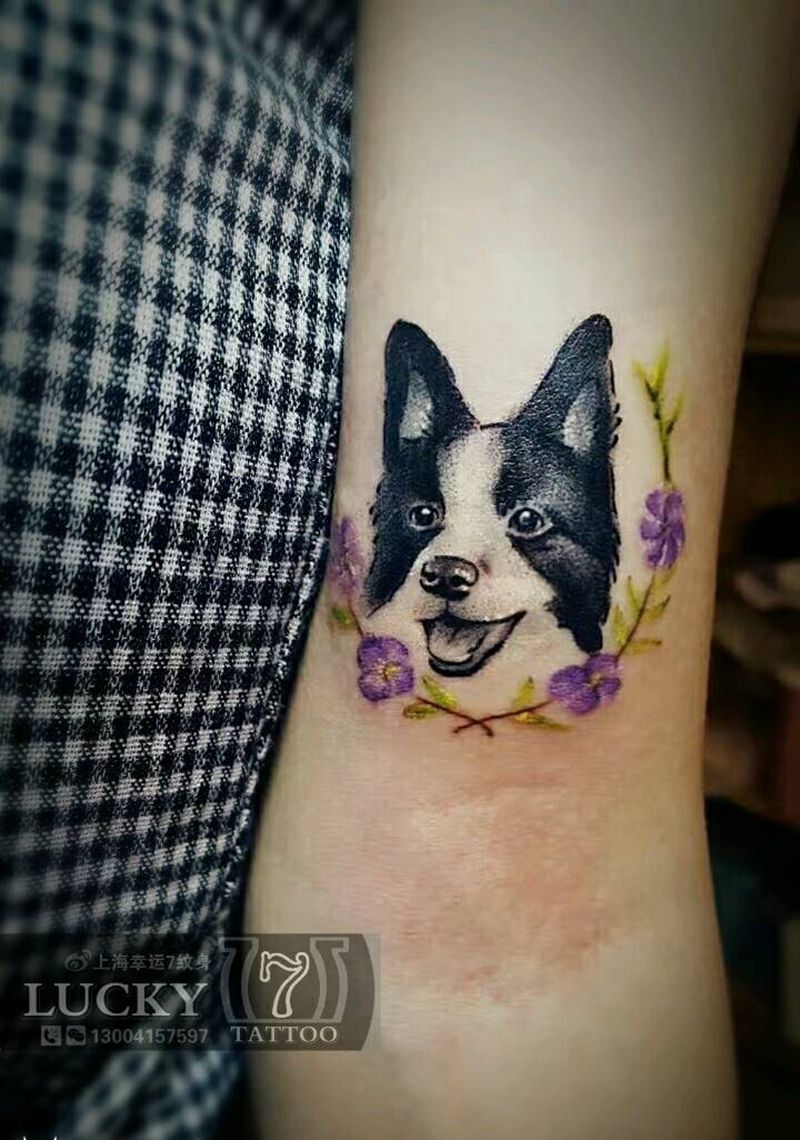 狗|幸运7纹身纹身图片_手臂清新动物原创彩色成品纹身图案