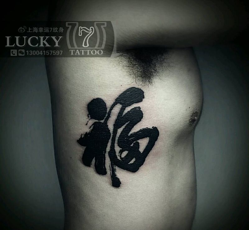 书法|汉字|幸运7纹身纹身图片_腰部字符成品纹身图案