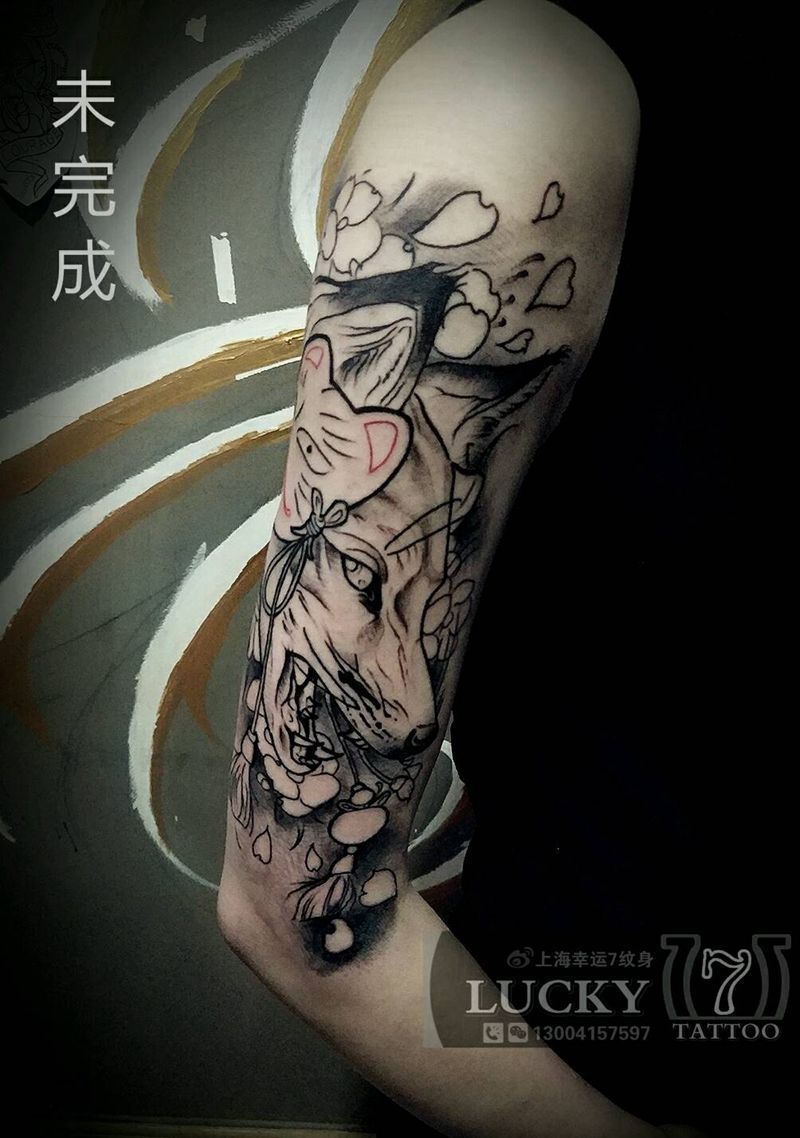 狐狸|幸运7纹身7纹身图片_腿部欧美动物彩色修改成品纹身图案